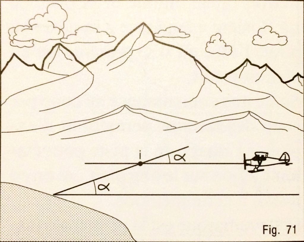 La possibilité de faire demi-tour est en particulier importante lorsque l’on s’engage dans une vallée. Le relief peut monter plus vite que l’avion, et le demi-tour doit à tout instant rester une option.