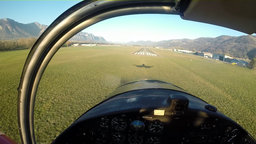 Nous y voilà, la piste se rapproche et il faut poser l’avion, sur une piste qui elle monte vers l’avion… Dernière particularité du vol montagne, contrairement à un atterrissage en plaine, le pilote ne réduira pas les gaz à l’arrondi, mais maintiendra la puissance permettant à l’avion de réaliser la ressource et contacter en douceur le sol. Parfois, à 3000 m d’altitude, il n’est pas rare de se poser pleine puissance !