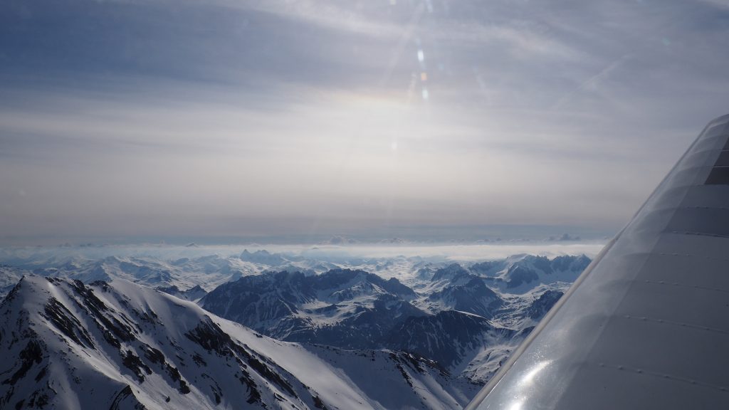 C’est très simple, tout comme nous, les performances de l’avion subissent les effets de l’altitude : moins d’air pour le moteur, moins d’air pour porter l’avion. A trois mille mètres, altitude moyenne des glaciers, la pression est de 700 mb, et donc de 30% inférieure à la pression au niveau de la mer. Et à deux mille mètres, la densité de l’air a chuté de 20%.